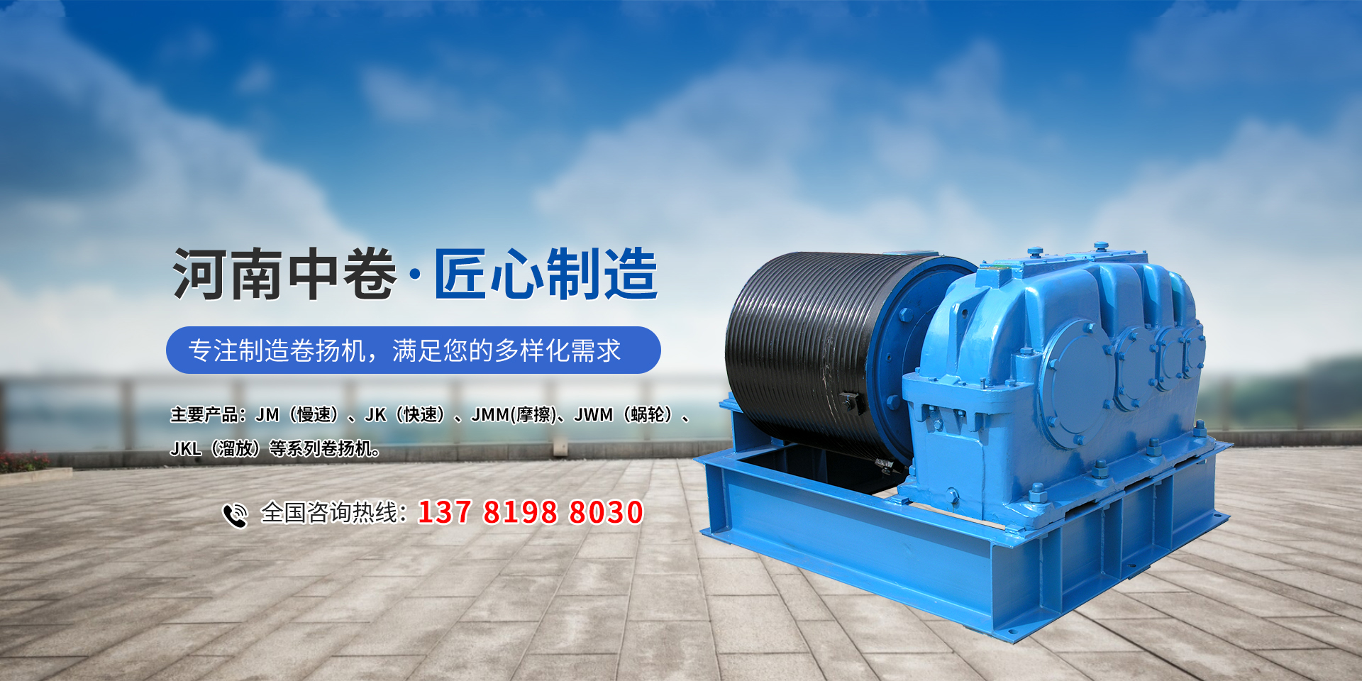 公司主要產(chǎn)品:JM(慢速)、JK(快速),JMM(摩擦),JWM(蝸輪),JKL(溜放)等系列卷揚機,并承接各種非標卷揚機設計、制造。